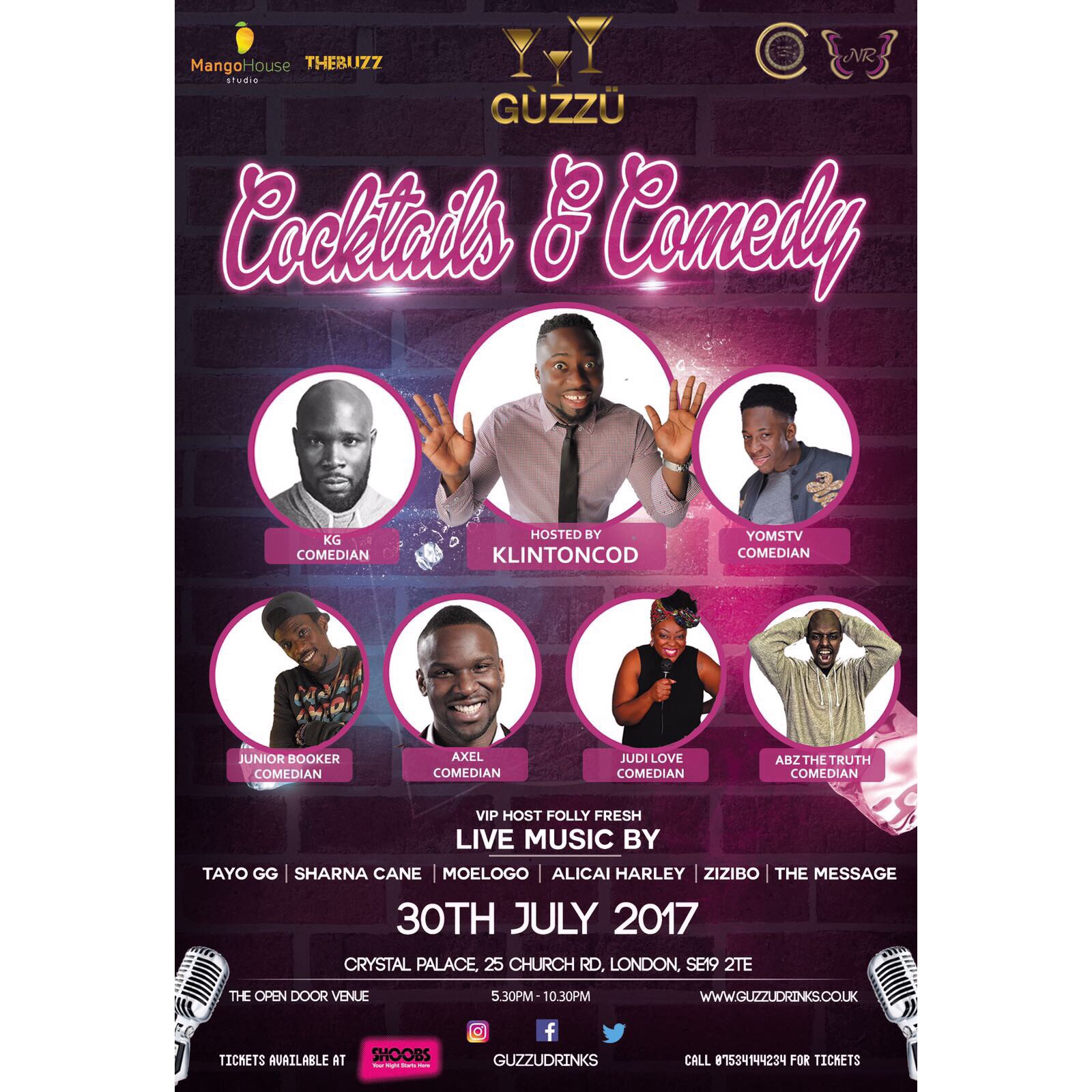 GÙZZÜ Drinks and Nina Rose Presents Cocktails & Comedy the official launch of GÙZZÜ founded by Samuel Elijah , Cocktails and Comedy is a live comedy show whith a cinematic twist which will ...
