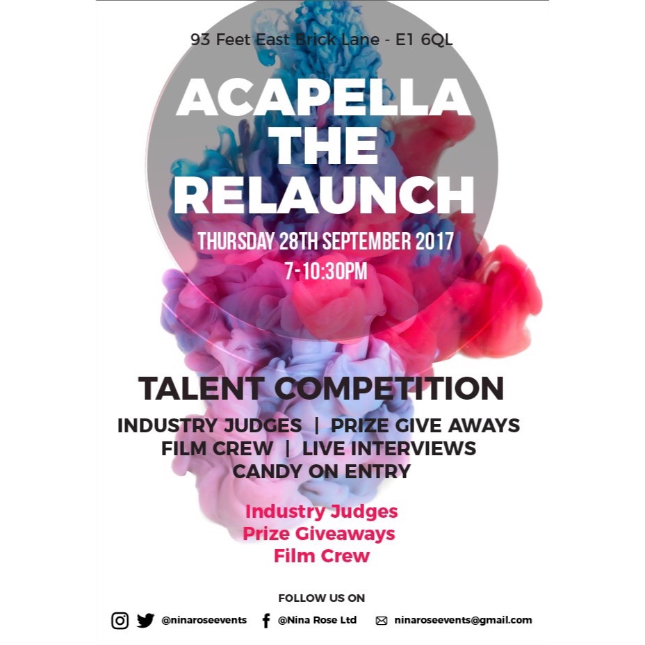NEW NEW NEW!!! We are relaunching ACAPELLA MUSIC SHOWCASE 😎 3 judges 3 rounds 3 prizes 1 WINNER🏆 Our judges for September will be these sensational creatives and industry professionals @o...